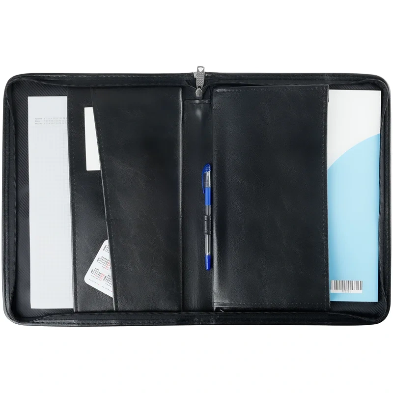 Деловая папка Officespace Bergamo черная, 250х350мм, искусственная кожа, на молнии