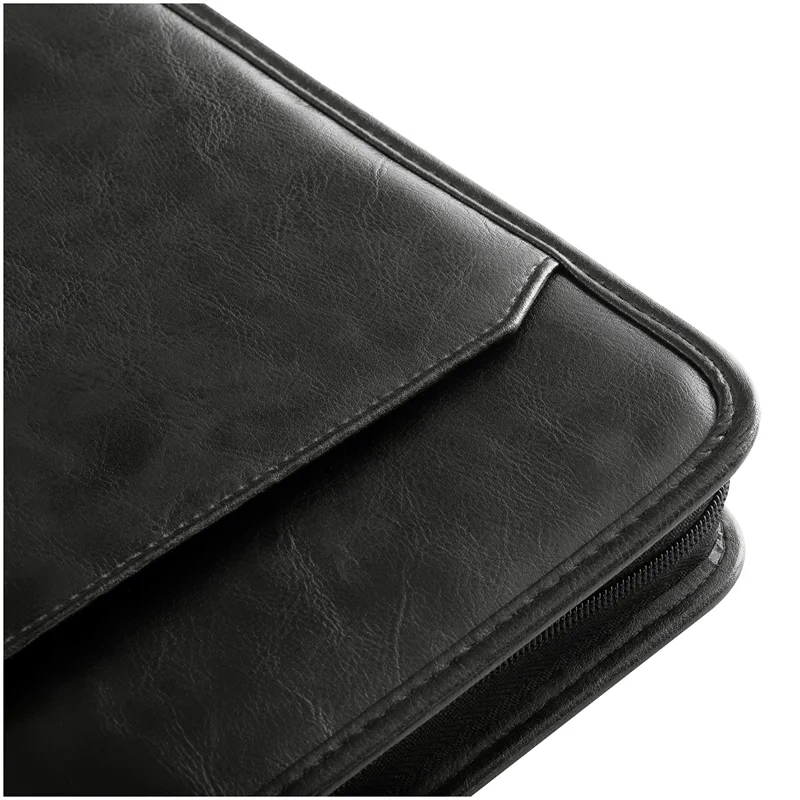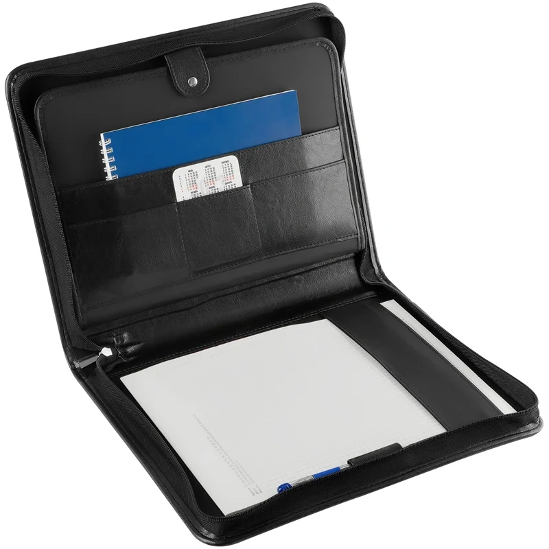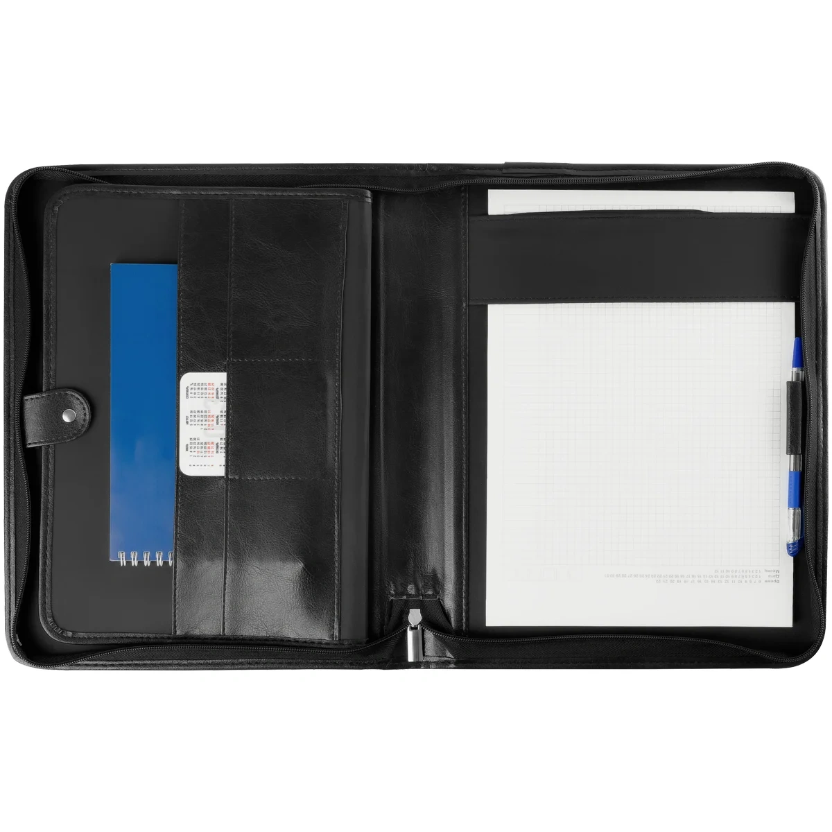 Деловая папка Officespace Palada черная, 345х275мм, искусственная кожа, на молнии, блокнот