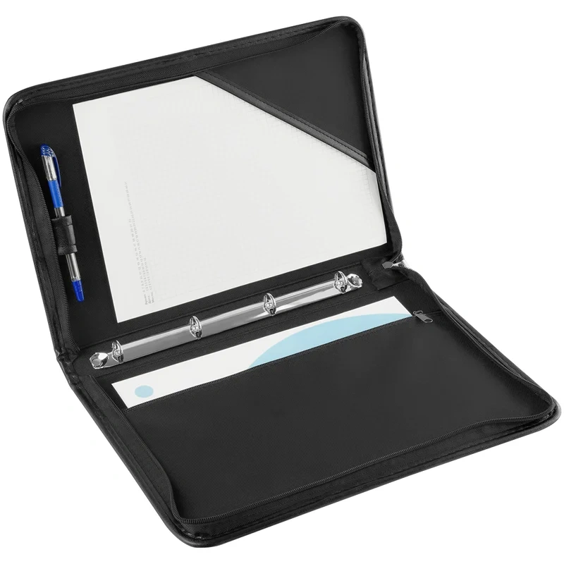 Деловая папка Officespace Verona черная, 350х250мм, искусственная кожа, на молнии