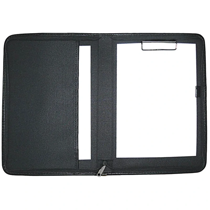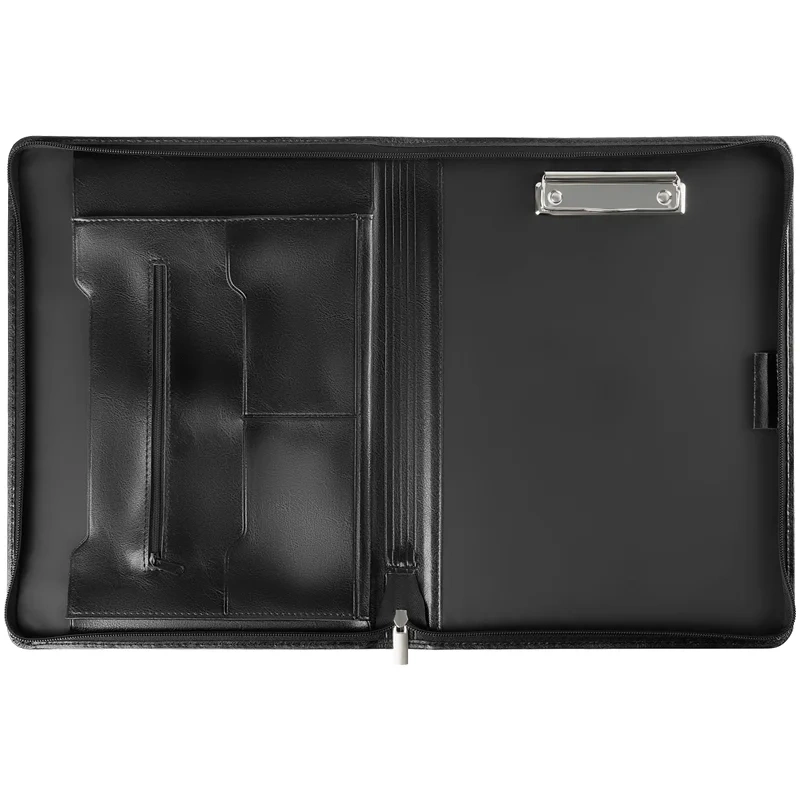 Деловая папка Officespace Varna черная, 350х250мм, искусственная кожа, на молнии, зажим для бумаг