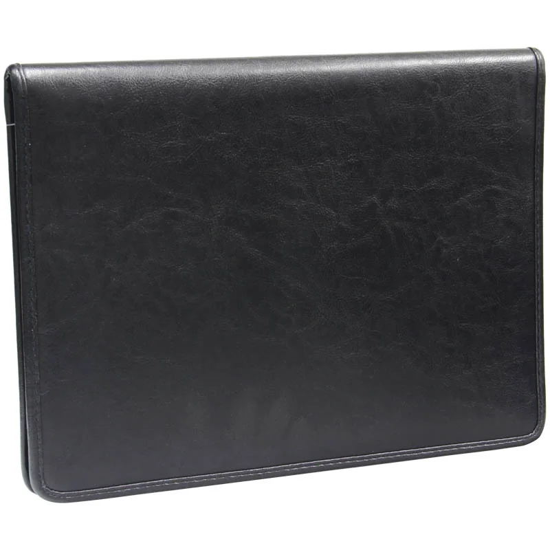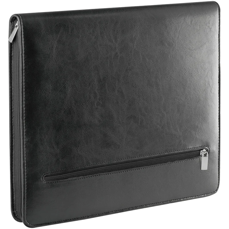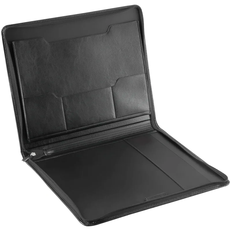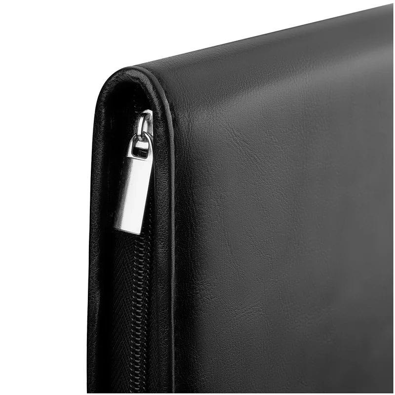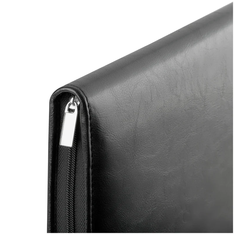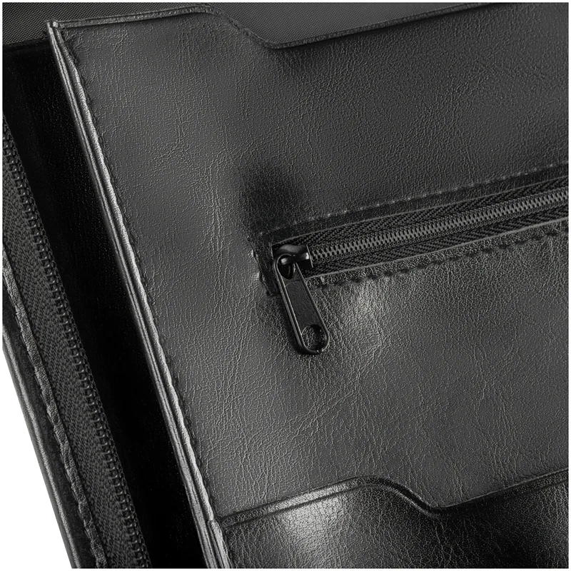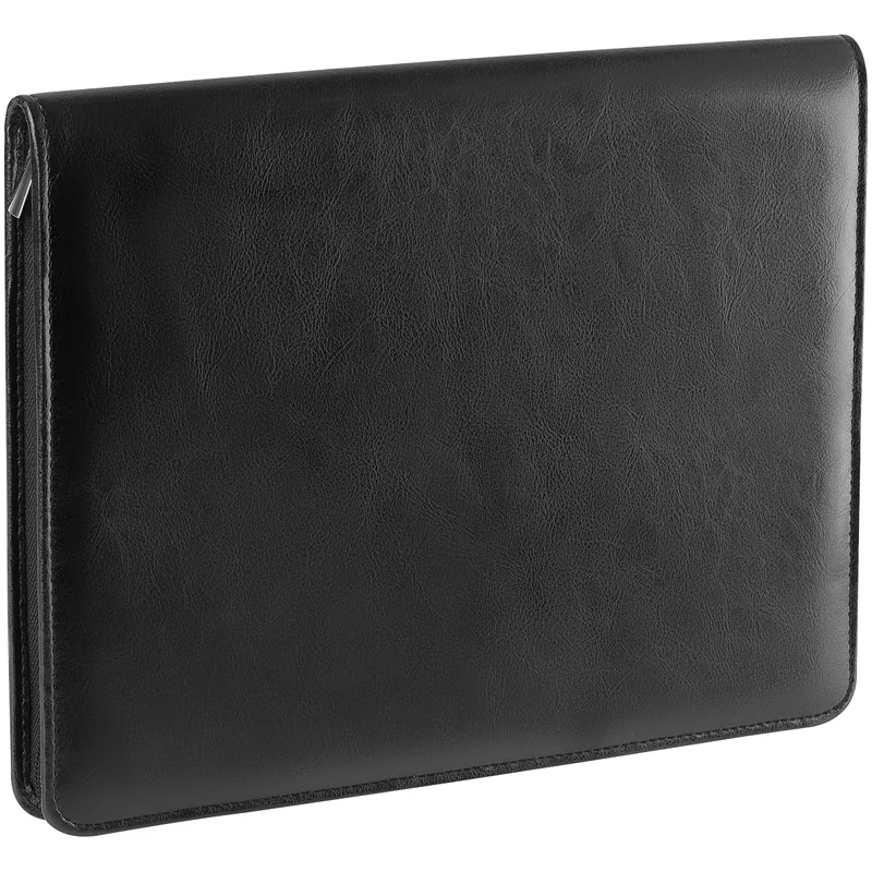 Деловая папка Officespace Siera черная, 340х260мм, искусственная кожа, на молнии, блокнот