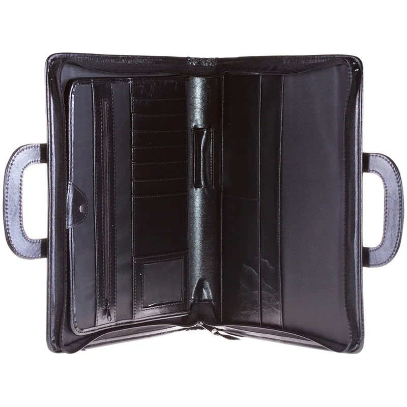 Деловая папка Officespace Carina черная, 360х300мм, искусственная кожа, на молнии, выдвижная ручка