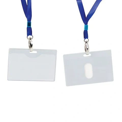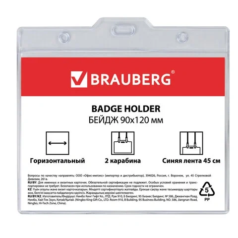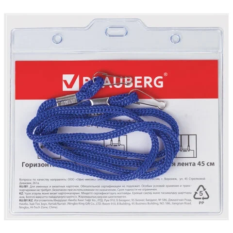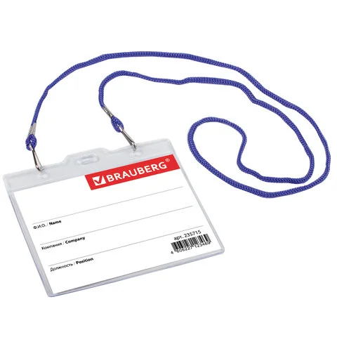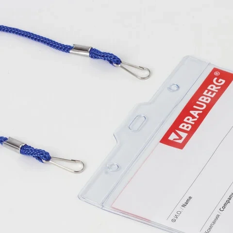 Бейдж с тесьмой Brauberg 90х120мм, синяя тесьма 45см