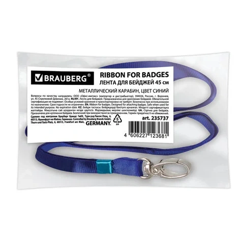 Держатель для бейджа на карабине Brauberg синий, 45см
