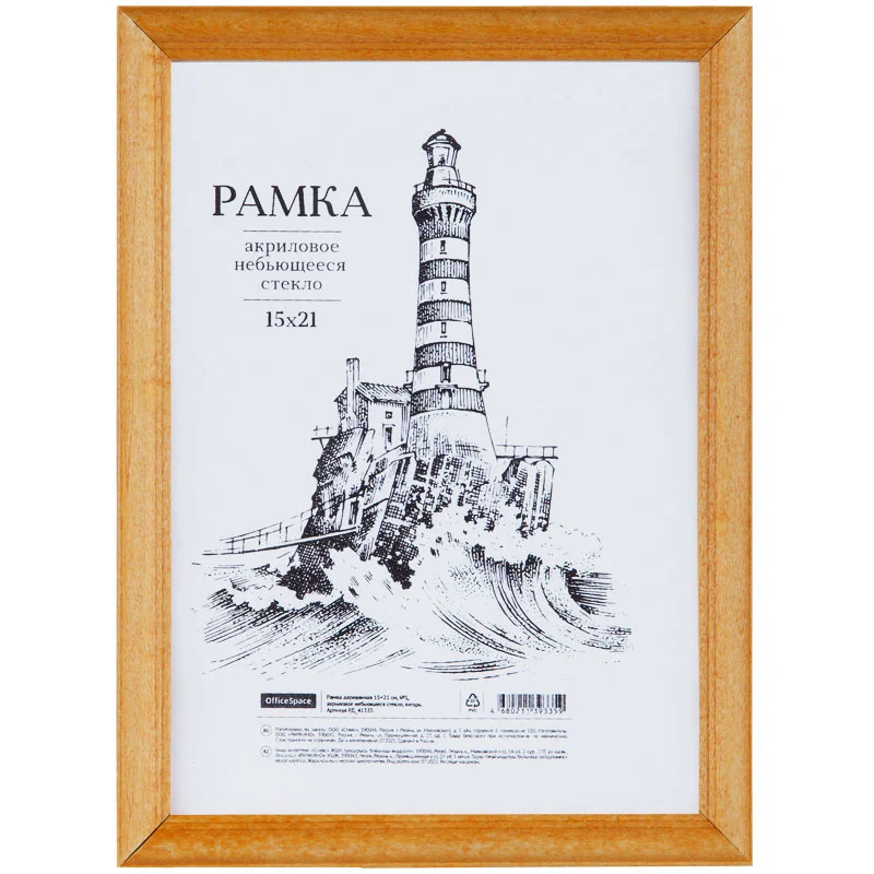 Рамка деревянная 15*21см, OfficeSpace, №1, акриловое небьющееся стекло, янтарь