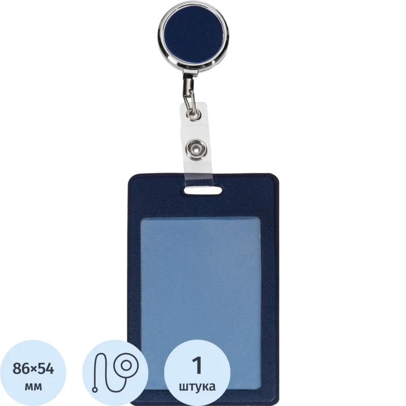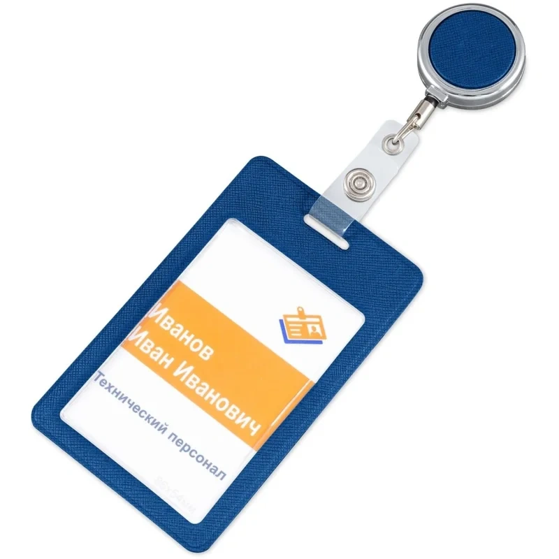Бейдж БЕЙДЖ ВЕРТИКАЛЬНЫЙ С ДЕРЖАТЕЛЕМ-РУЛЕТКОЙ, синий