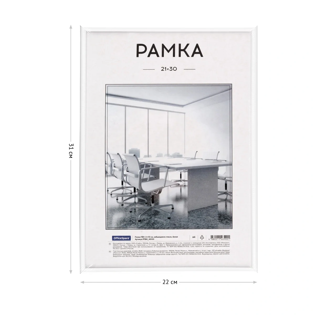 Рамка ПВХ 21*30см, OfficeSpace, небьющееся стекло, белая