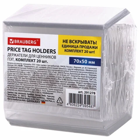 Держатель для ценников Brauberg 70х50мм, 0.5мм, ПЭТ, 20шт/уп
