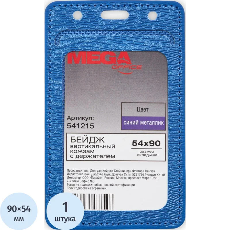 Бейдж без держателя Mega 54х90мм, синий металлик