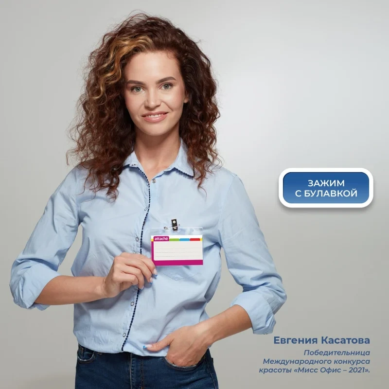 Бейдж на зажиме с булавкой Attache 87х120 мм, 10шт/уп