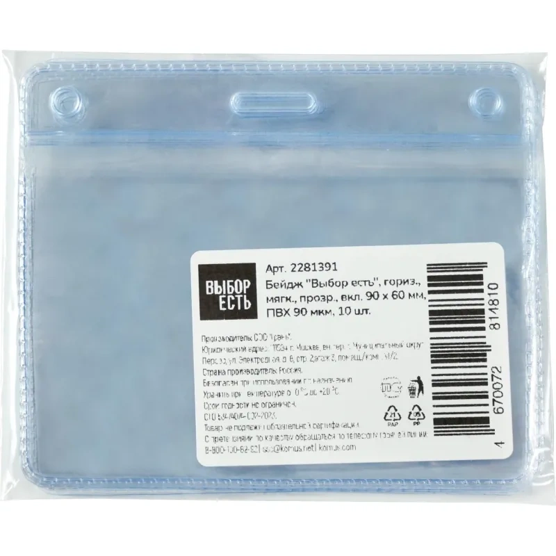 Бейдж Выбор есть, гориз., мягкий, прозр., вкл. 90х60мм, ПВХ 90мкм, 10шт/уп