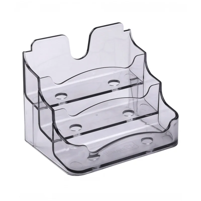 Подставка для визиток настольная Стамм 70*102мм, 3 отделения, тонированная серая