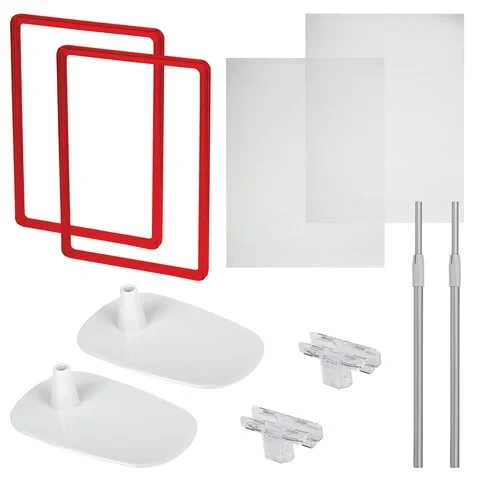 Стойка-инфодержатель напольная КОМПЛЕКТ 2 шт., А4 (высота трубки до 55 см) КРАСНАЯ, 202357