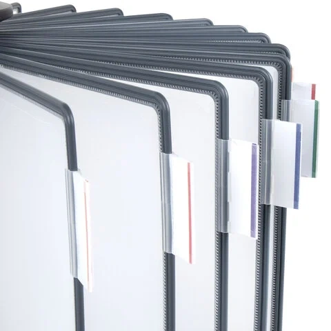 30 двухсторонних панелей серого цвета позволяют разместить одновременно до 60 листов формата А4. Прочные и гибкие литые рамки панелей изготовлены из полипропилена, пригодного для повторной переработки и дальнейшего использования. Демопанели оснащены съемными ярлычками-табуляторами для маркировки и удобного поиска нужной информации. Карман демопанели из прочного прозрачного материала с антибликовым покрытием надежно защитит документы от внешних воздействий. Устойчивое основание и поворот на 360 градусов гарантируют удобство пользователю и быстрый доступ к документу. Стильный черный цвет пластикового корпуса подойдёт для большинства современных интерьеров.