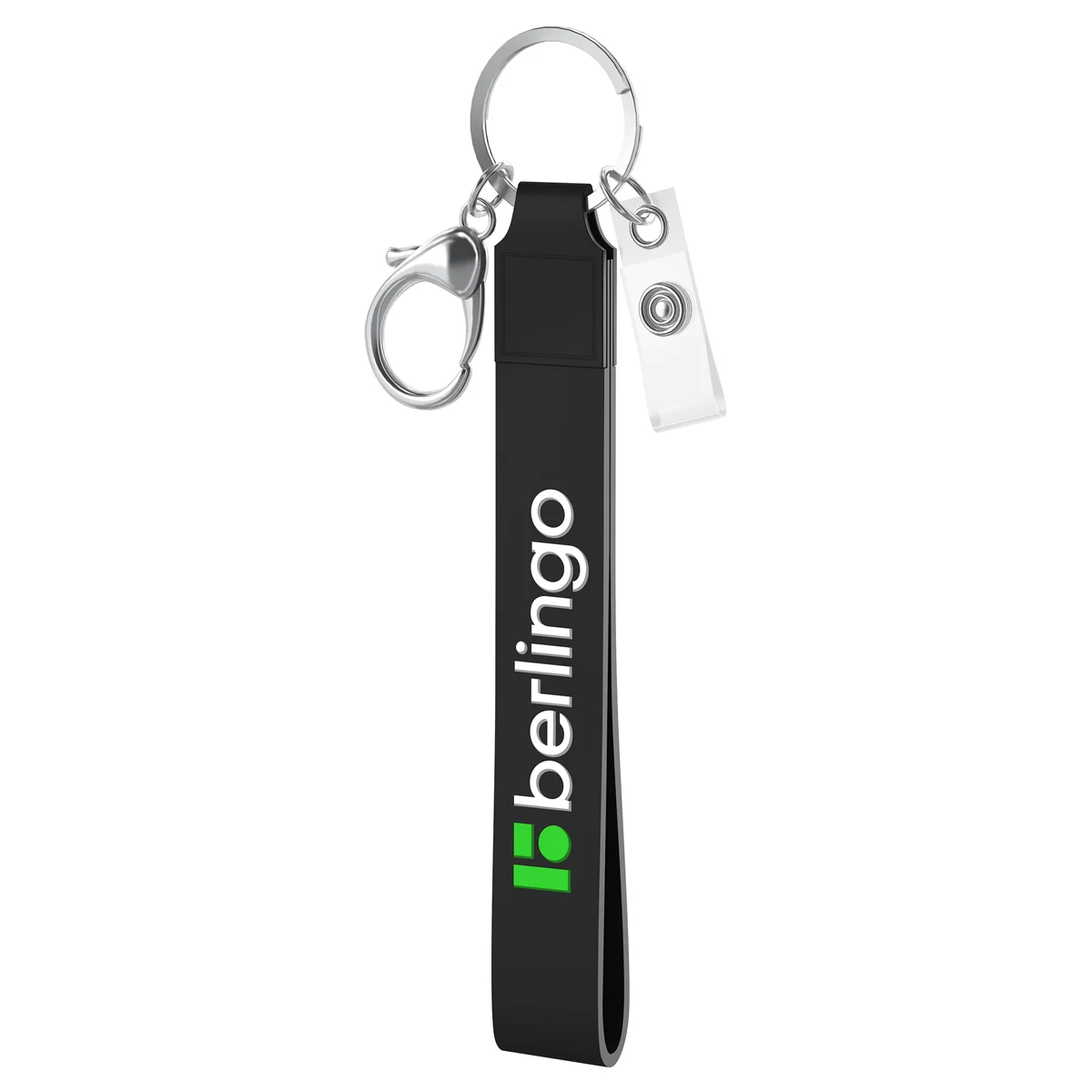 Держатель для бейджа Berlingo ID 400 13см, черный, силиконовый, с карабином и клипом