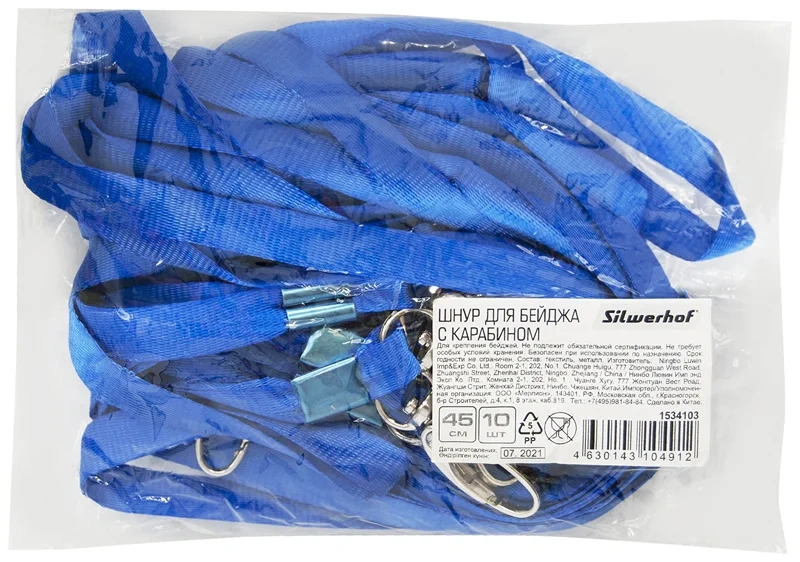 Держатель для бейджа Silwerhof 45см карабин текстиль синий (упак.:10шт)