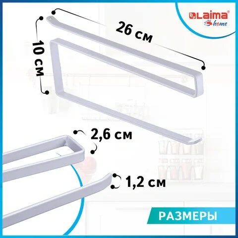 Универсальный кухонный держатель-вешалка выполнен из металла. Предназначен для удерживания как кухонных бумажных или тканевых полотенец, так и прочих принадлежностей обихода: туалетной бумаги, половников, пищевой пленки, фольги для запекания, пергаментной бумаги, посуды и многого другого.