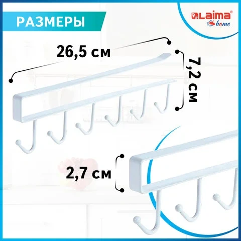 Держатель для полотенец и кухонной утвари 6 крючков подвесной для шкафов и полок LAIMA HOME, 608002