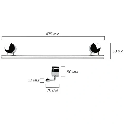 Держатель для полотенец LAIMA, ширина 46 см, нержавеющая сталь, крепление к стене, 607432