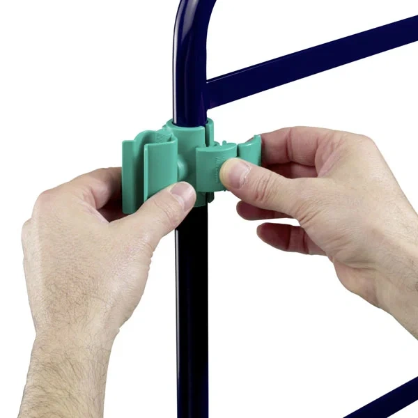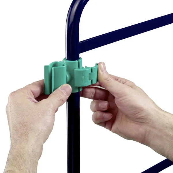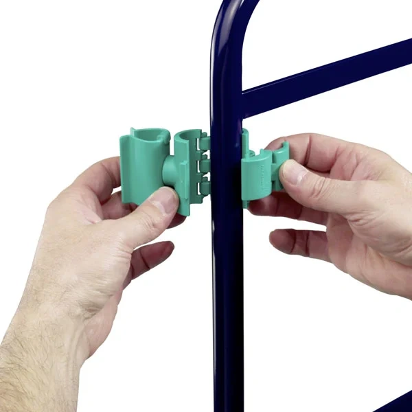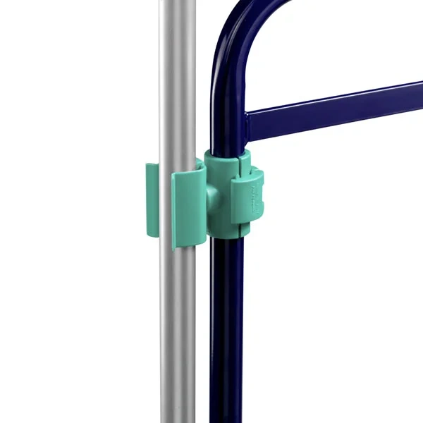 Полностью в пластике и без винтов, держатель универсален, подходит для всех вертикальных рамок диам. 22 мм, благодаря системе защелкивания, фиксирующей ее на раме за несколько секунд.