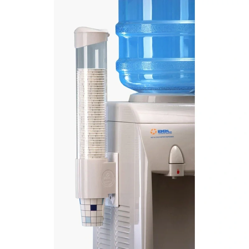 Держатель для стаканов крепится к корпусу кулера при помощи надежных шурупов. Рассчитан на размещение стаканчиков диаметром 75 мм. Выполнен из пластика белого цвета. По своим параметрам и стилю станет прекрасным дополнением любого кулера.