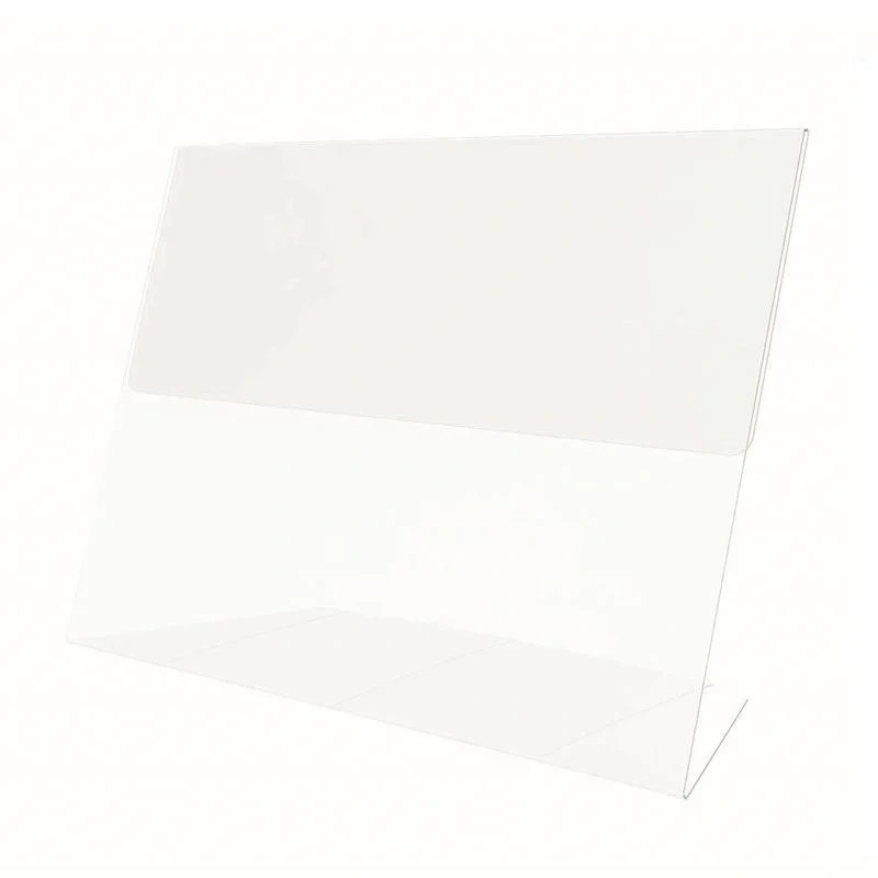 Держатель информации из пластика L-образный. Применяется в качестве держателя ценников и информационного носителя. Высечка ребер жесткости обеспечивают прочность изделия, а боковые загибы плотно удерживают вставленную информацию. Использование антибликового материала делает изделие стойким к царапинам и обеспечивает оптимальный угол обзора. Изготовлен из стандартного материала ПЭТ.