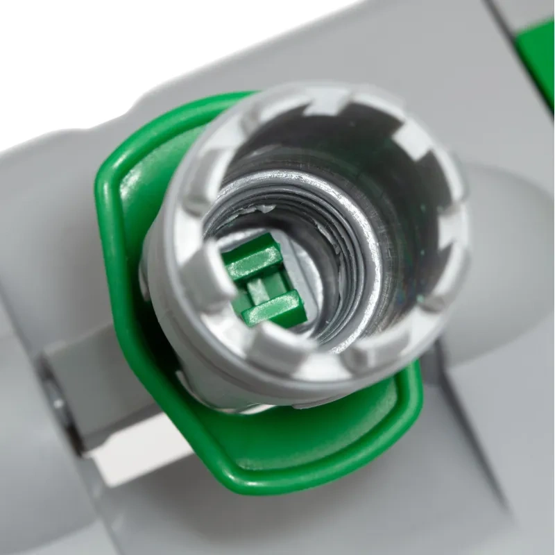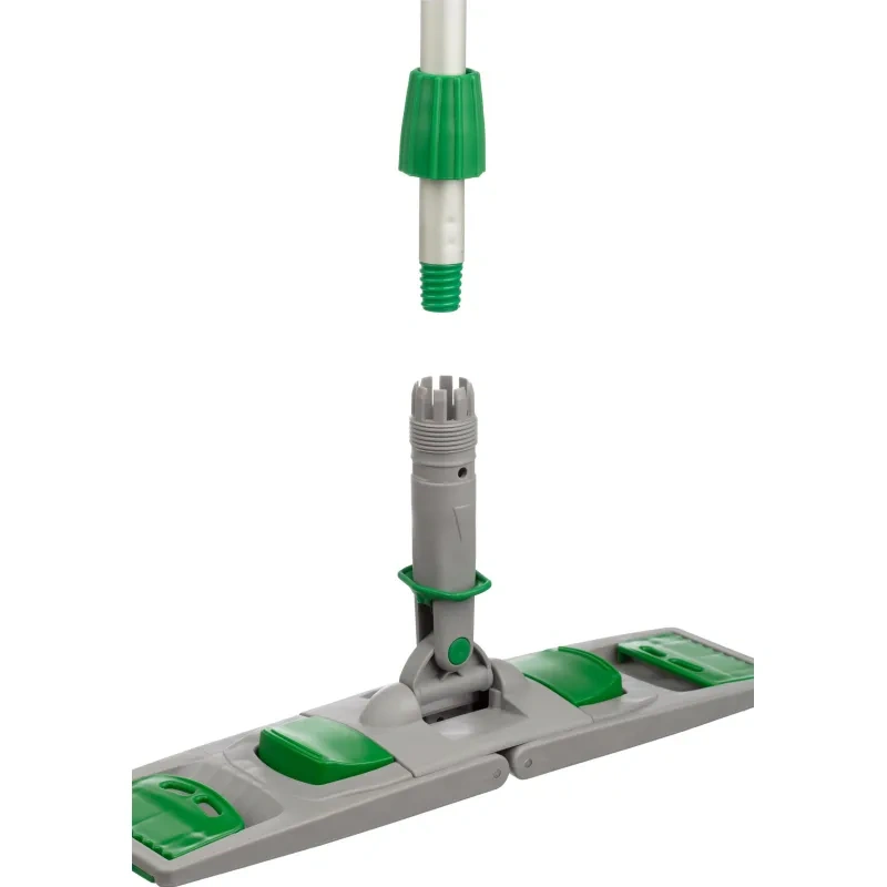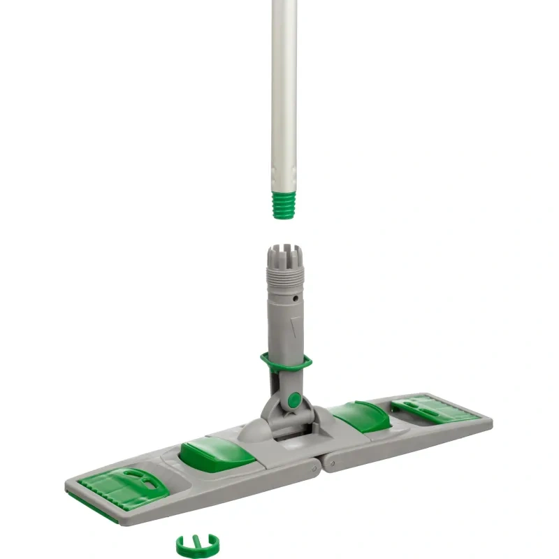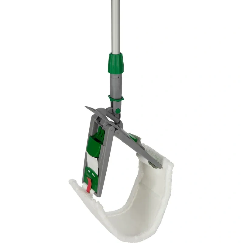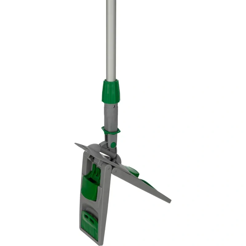 Оснащен шарнирным соединением, обеспечивающим хороший контакт мопа с поверхностью и свободу движений, что позволяет проводить уборку в труднодоступных местах: под витринами, стеллажами, полками, шкафами и прочей мебелью.