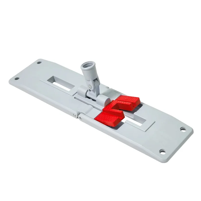Для удобства вдевания в карманы моющих насадок, швабра 40-МR имеет скошенные края и пружины в основания шарнира, препятствующие складыванию держателя пополам.
