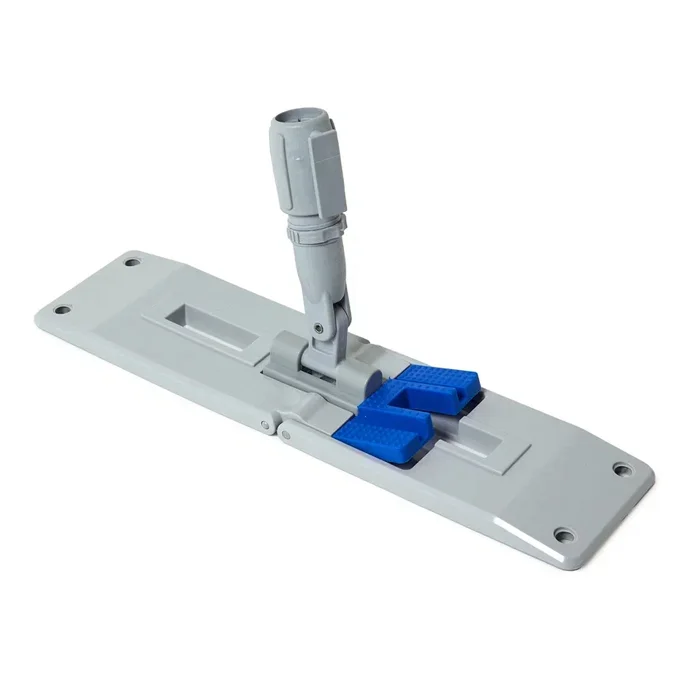 Специальный рычаг позволяет снимать моп с держателя без использования рук. Сам держатель имеет прямоугольную форму, что обеспечивает возможность тщательной промывки углов и повышает качество уборки. Его небольшой вес и компактные размеры позволяют легко найти место для хранения.