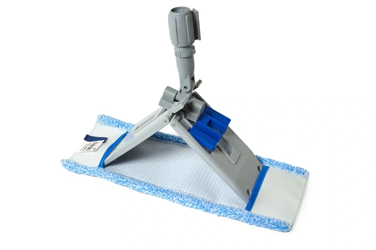 Держатель удобно применять с телескопическими ручками от Vileda. При использовании держателя и ручки снижается количество контактов с водой, что способствует более гигиеничной и эффективной уборке.