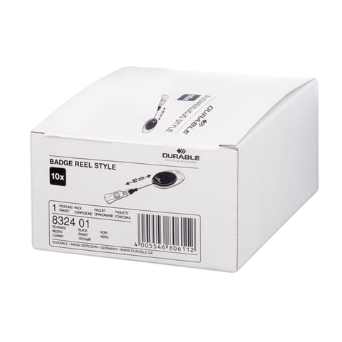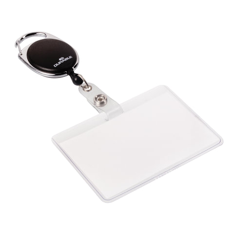 Держатель-рулетка для бейджа Durable с клипом, черный, 80см, на кнопке, 10 шт/уп, 8324-01