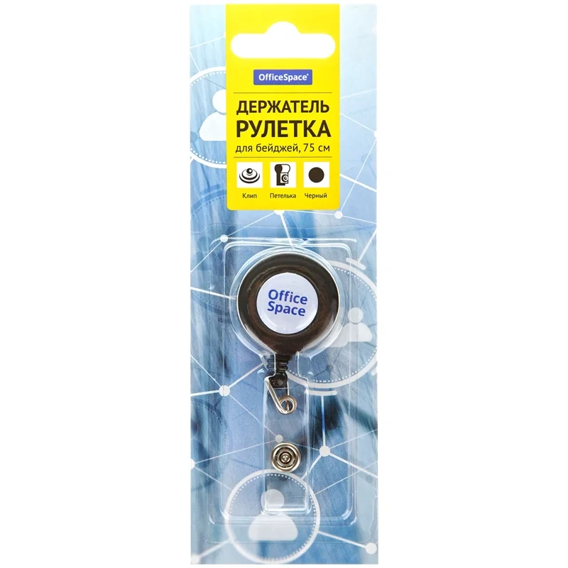 Держатель-рулетка для бейджей в блистере. Позволяет разместить бейдж на поясе, ремне. Цвет черный. Удобное сцепление. Подходит для крепления бейджей, пропусков, визиток, именных карточек, ключей и мелкого инструмента.