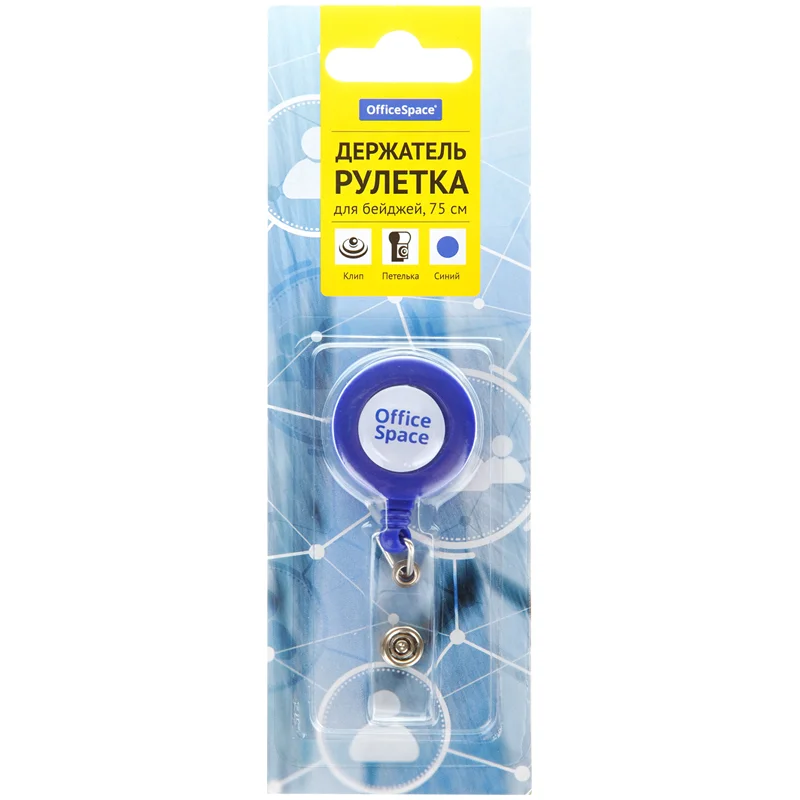 Держатель-рулетка для бейджа Officespace с клипом, синий, 75см