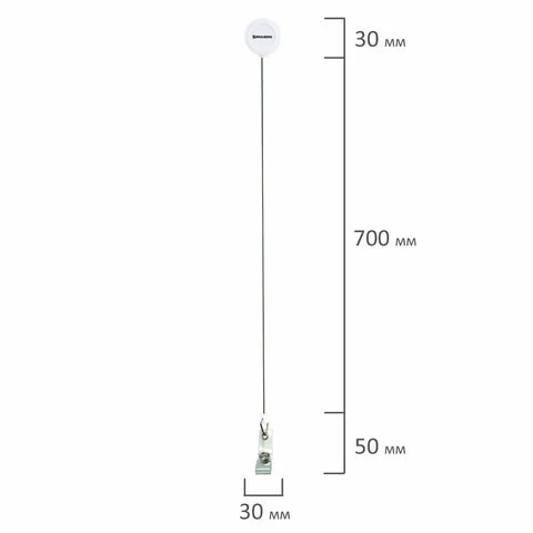 Держатель-рулетка для бейджей 70 см, петелька, клип, белый, в блистере, BRAUBERG, 238240