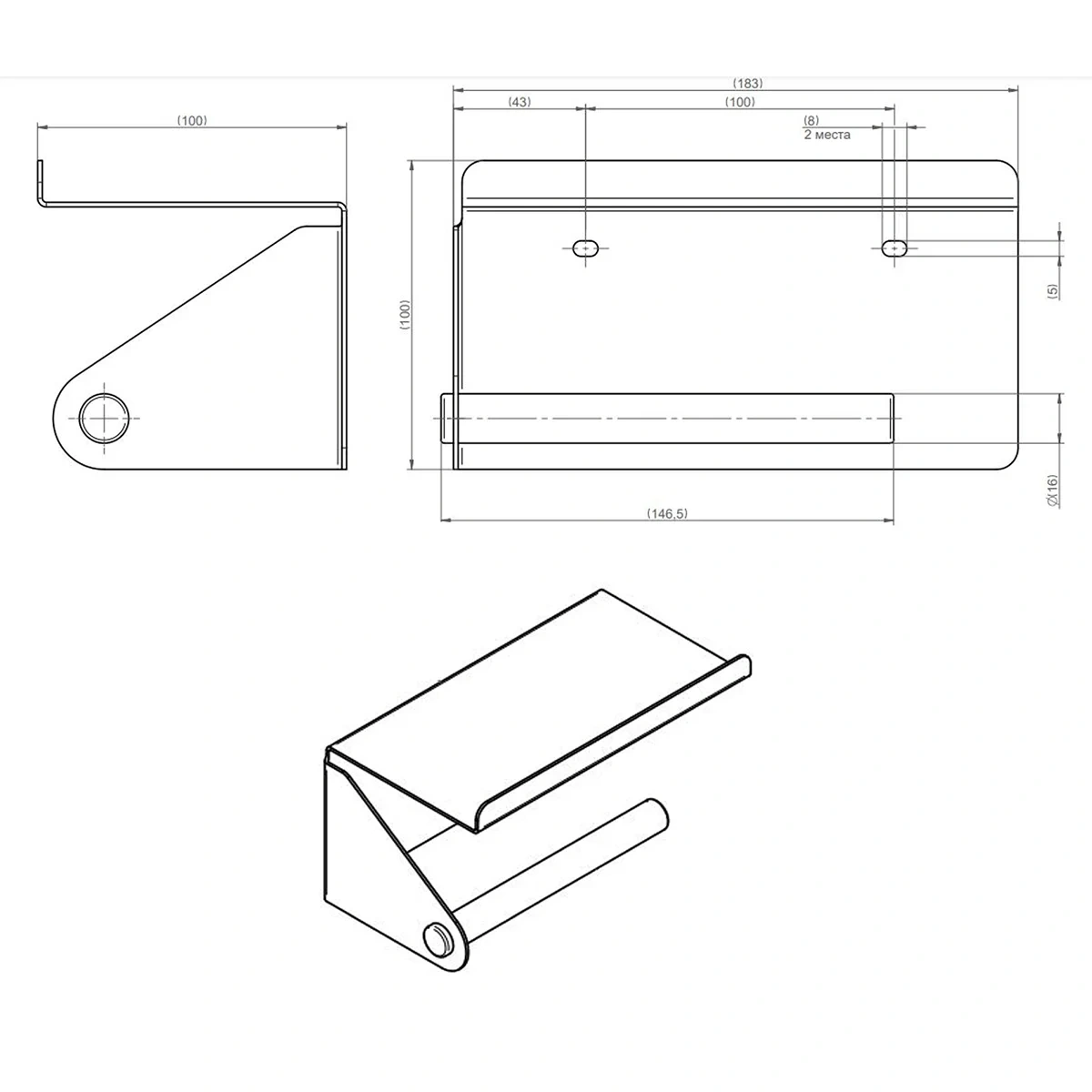 Держатель туалетной бумаги Merida Stella R с полкой, матовый