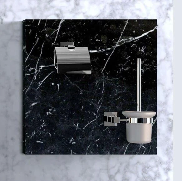 Держатель для туалетной бумаги черный 16900.N из коллекции BARCELONA выполнен из нержавеющей стали AISI 304. Долговечный и устойчивый к коррозии. Подходит для общественных помещений и домашнего использования. Стильный угловатый дизайн впишется в любой интерьер. Скрытое крепление. Крепежный материал входит в комплект.