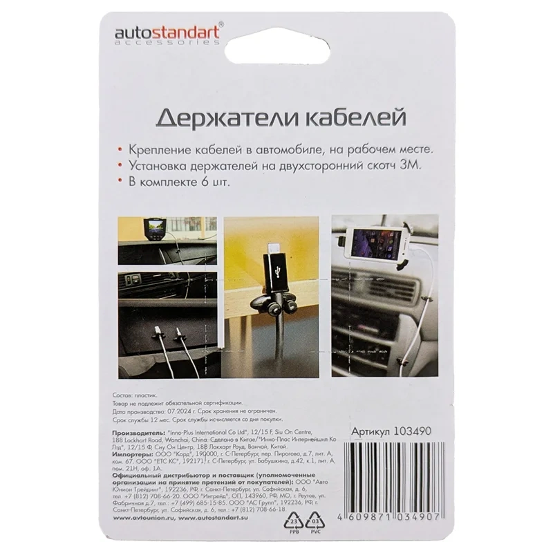 Обеспечивают фиксацию проводов в автомобиле, на рабочем месте в наиболее удобном положении под любым углом. Для кабелей диаметром до 6мм. Монтаж на 2-сторонний скотч 3M. В комплекте 6шт.