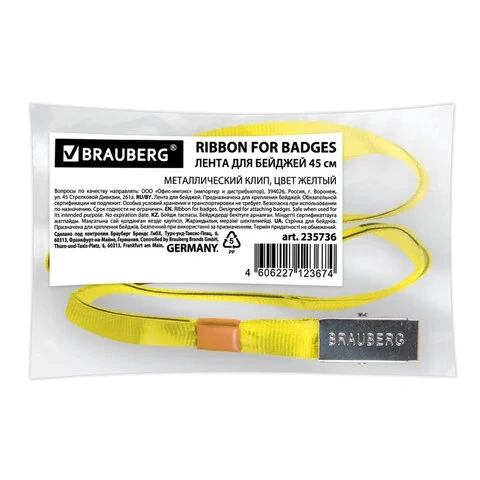Держатель для бейджа с зажимом Brauberg желтый, 45см