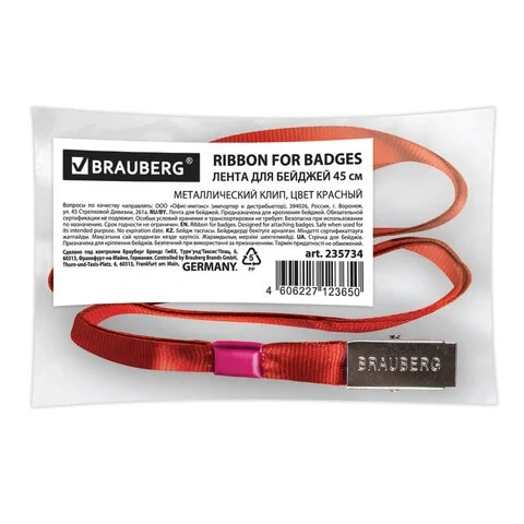 Держатель для бейджа с зажимом Brauberg красный, 45см
