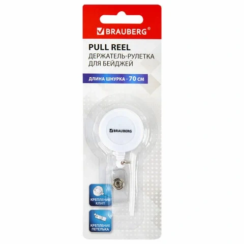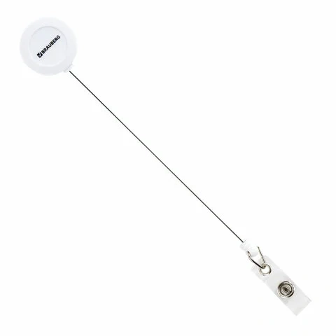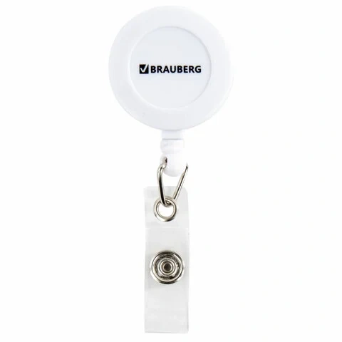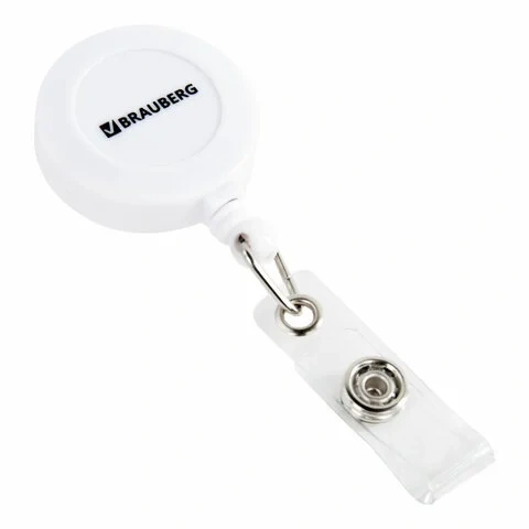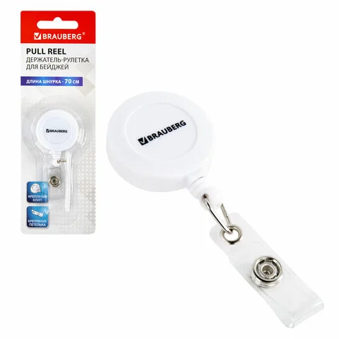 Держатель-рулетка для бейджей 70 см, петелька, клип, белый, в блистере, BRAUBERG, 238240
