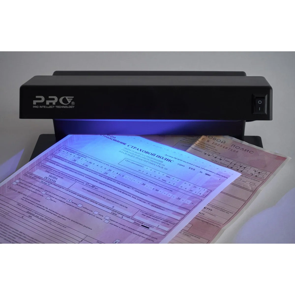 Просмотровый ультрафиолетовый детектор подлинности банкнот. Предназначен для проверки подлиности банкнот любой страны миры, а также защищенных документов: