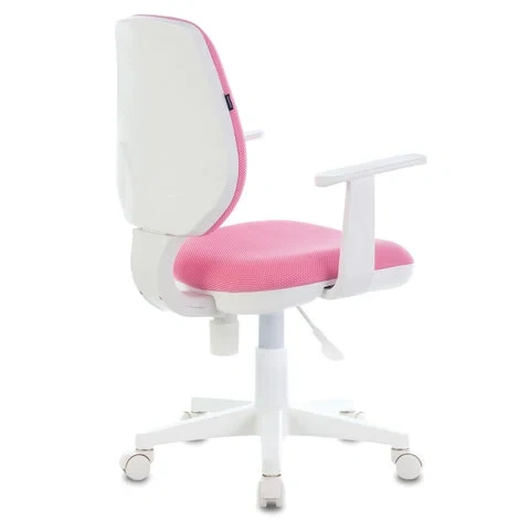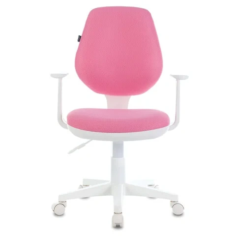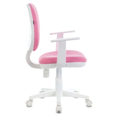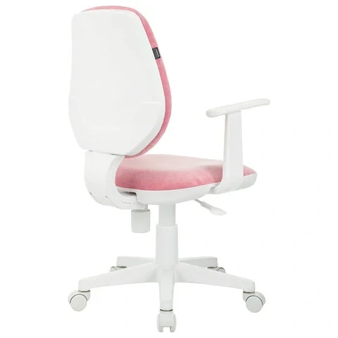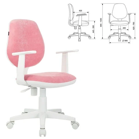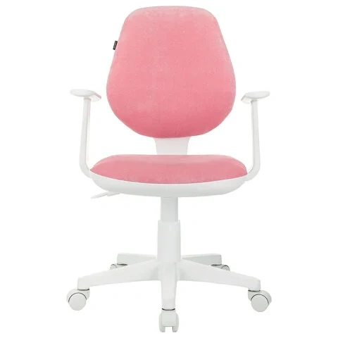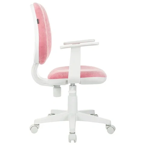 Кресло детское BRABIX 'Fancy MG-201W', с подлокотниками, пластик белый, ткань вельветовая, розовое,