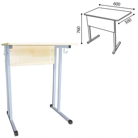 Парта школьная Умник 600х500х760мм, рост 6, серый каркас, ЛДСП клён, 1-местный