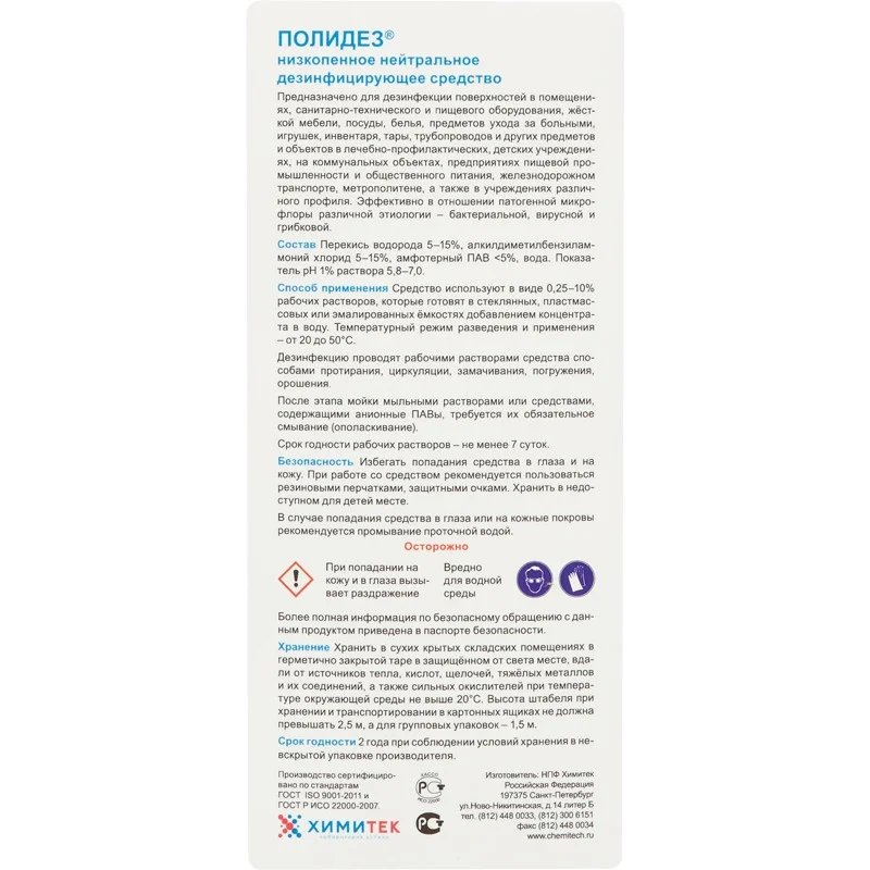 Дезинфицирующий концентрат Химитек Полидез 1л, для поверхностей, 010105