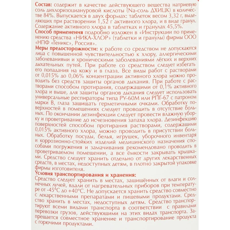 Дезинфицирующее средство Ника Хлор 1кг, 300 таблеток