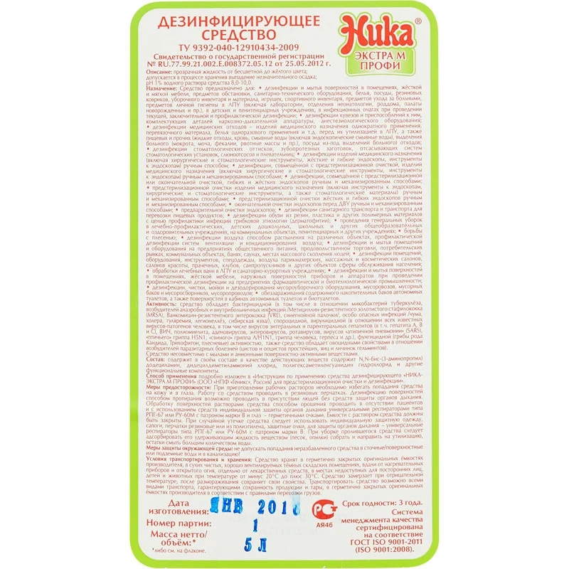 Дезинфицирующее средство Ника Экстра-М Профи 5л