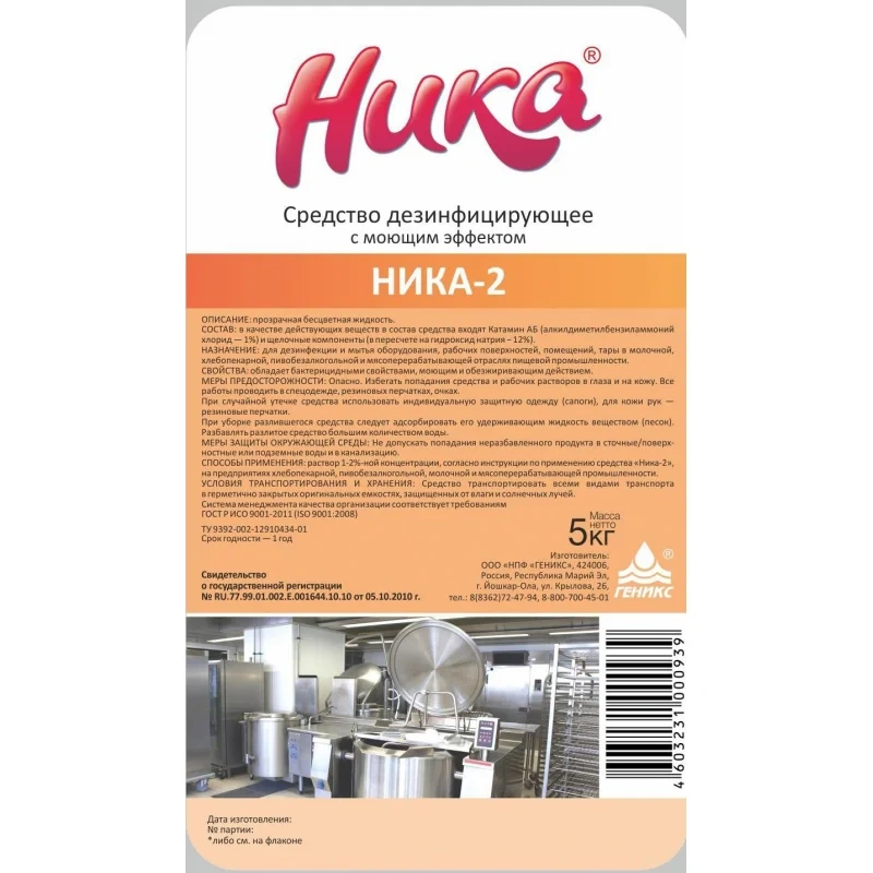 Дезинфицирующее средство Ника 2 5л, с моющим эффектом