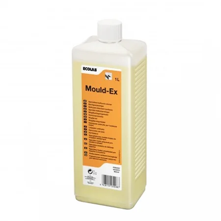 Mould Ex – моющее средство для борьбы с плесенью и грибком. Содержит активный хлор. Может быть применено на эмалированных, каменных материалах, на нержавеющей стали. При работе с текстилем может вызвать осветление (отбеливание). Средство немного пахнет хлором.