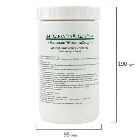 Назначение дезинфицирующего средства «Жавельон/Новелти Хлор»: предназначено для дезинфекции поверхностей в помещениях, жесткой мебели, санитарно-технического оборудования, резиновых ковриков, посуды, игрушек, предметов ухода за больными, изделий медицинского назначения, в том числе однократного применения, белья, уборочного инвентаря при инфекциях бактериальной (включая туберкулез), вирусной и грибковой (кандидозы, дерматофитии) этиологии в ЛПУ, инфекционных очагах, на коммунальных объектах, предприятиях общественного питания; для заключительной дезинфекции в детских учреждениях, для проведения генеральных уборок, а также для дезинфекции населением в быту (в соответствии с этикеткой для быта).