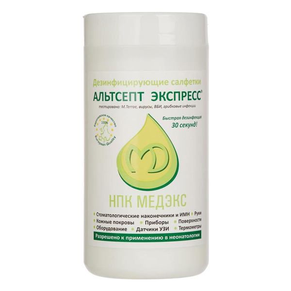 Дезинфицирующие салфетки Альтсепт Экспресс 80шт, для рук и поверхностей, туба